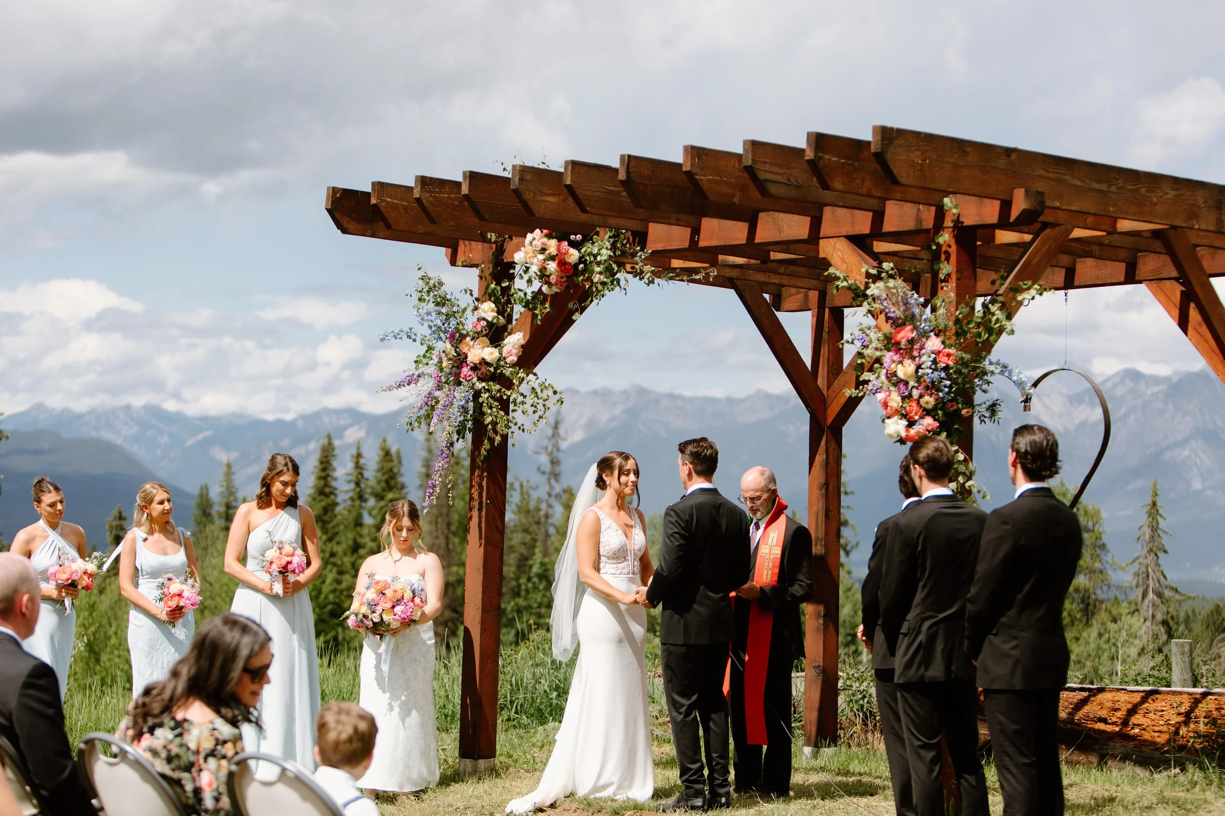 A&B’s day was the perfect mix of hometown charm and western chic flair. Set on a horse ranch with sweeping views of the Rocky Mountain Range and the Purcell mountain range, with an alpine lake a short drive away, this venue offered a combination of mountain peaks and peaceful waterfront. Surrounded by the people and landscape they love most, the day unfolded with an easy joyful energy from start to finish.